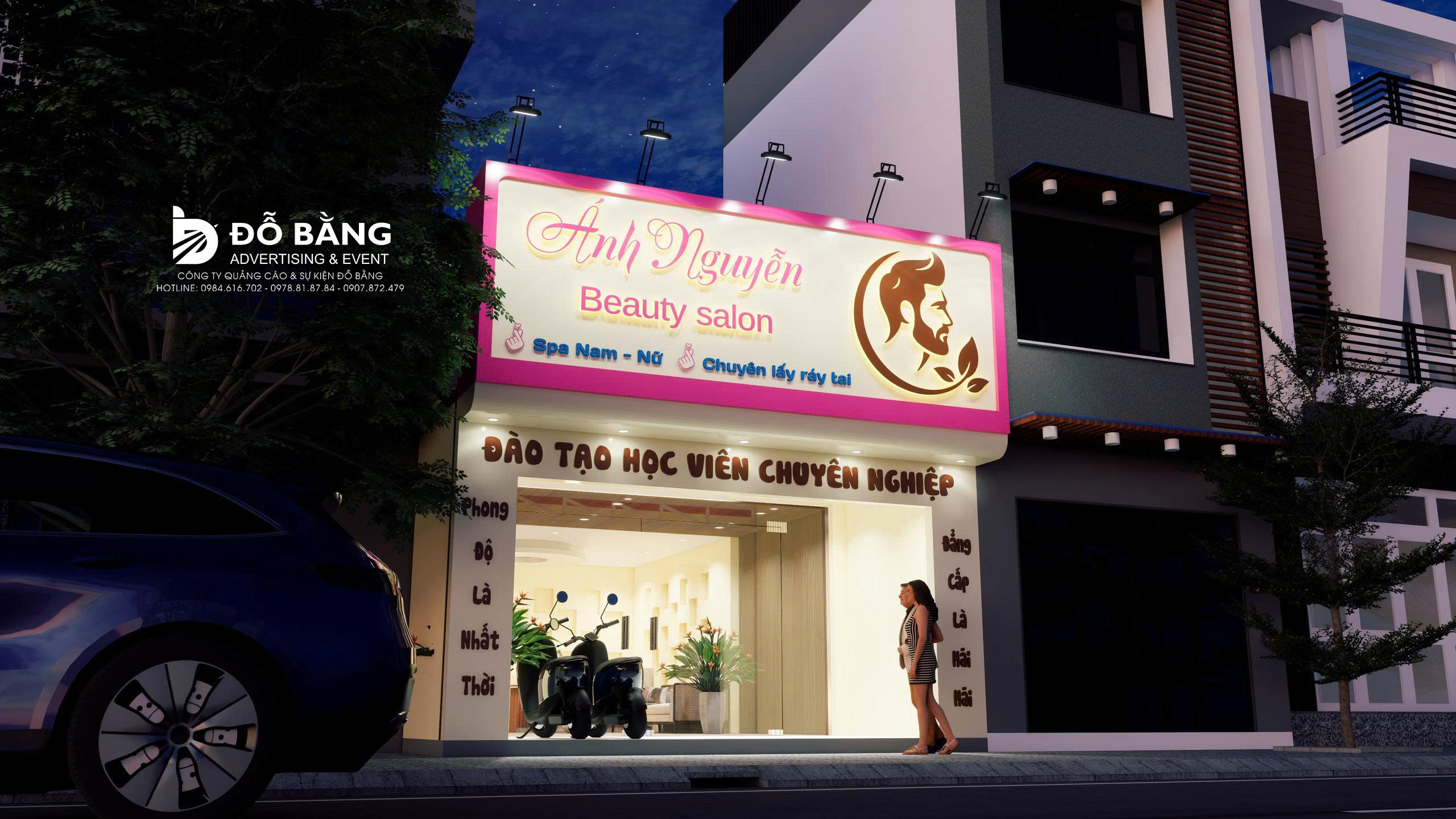 Biển hiệu ÁNH NGUYỄN Beauty Salon là sự kết hợp giữa bảng nền alu và chữ nổi- sự lựa chọn đẳng cấp cho những cơ sở muốn tạo ấn tượng mạnh mẽ và sang trọng. Với thiết kế 3D nổi bật, loại biển này tạo ra hiệu ứng thị giác độc đáo, thu hút ánh nhìn từ mọi góc độ.