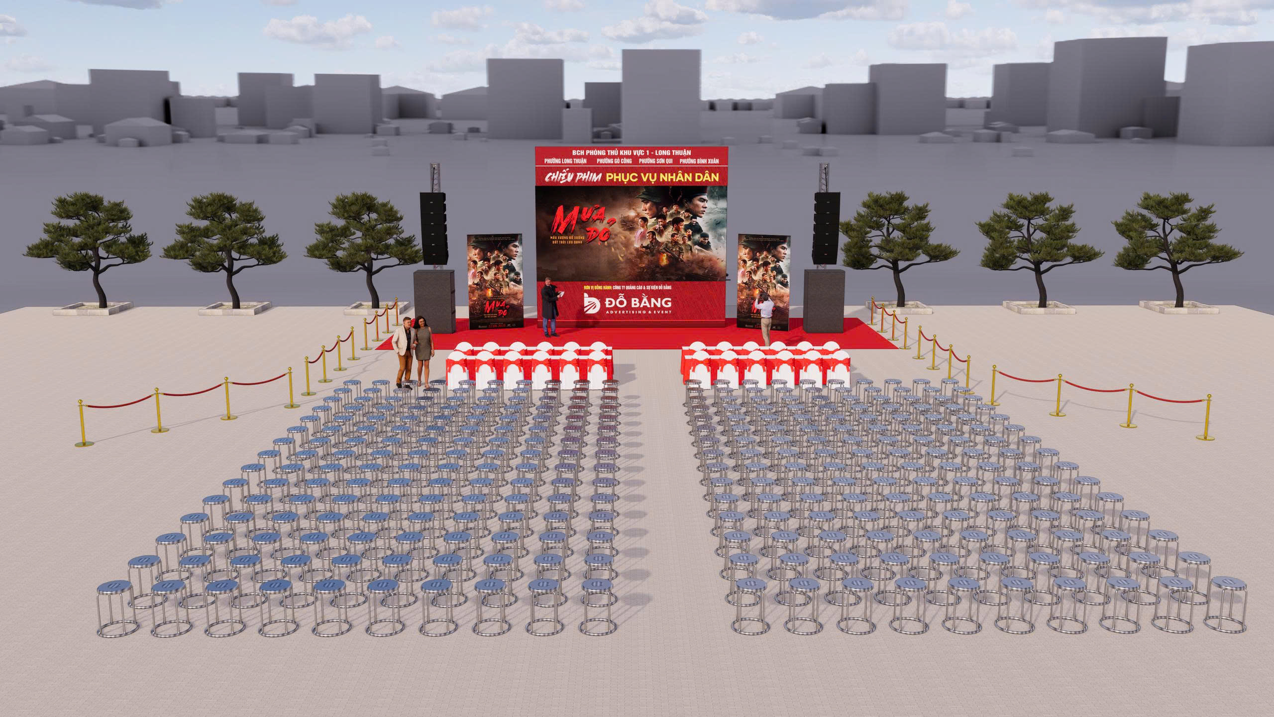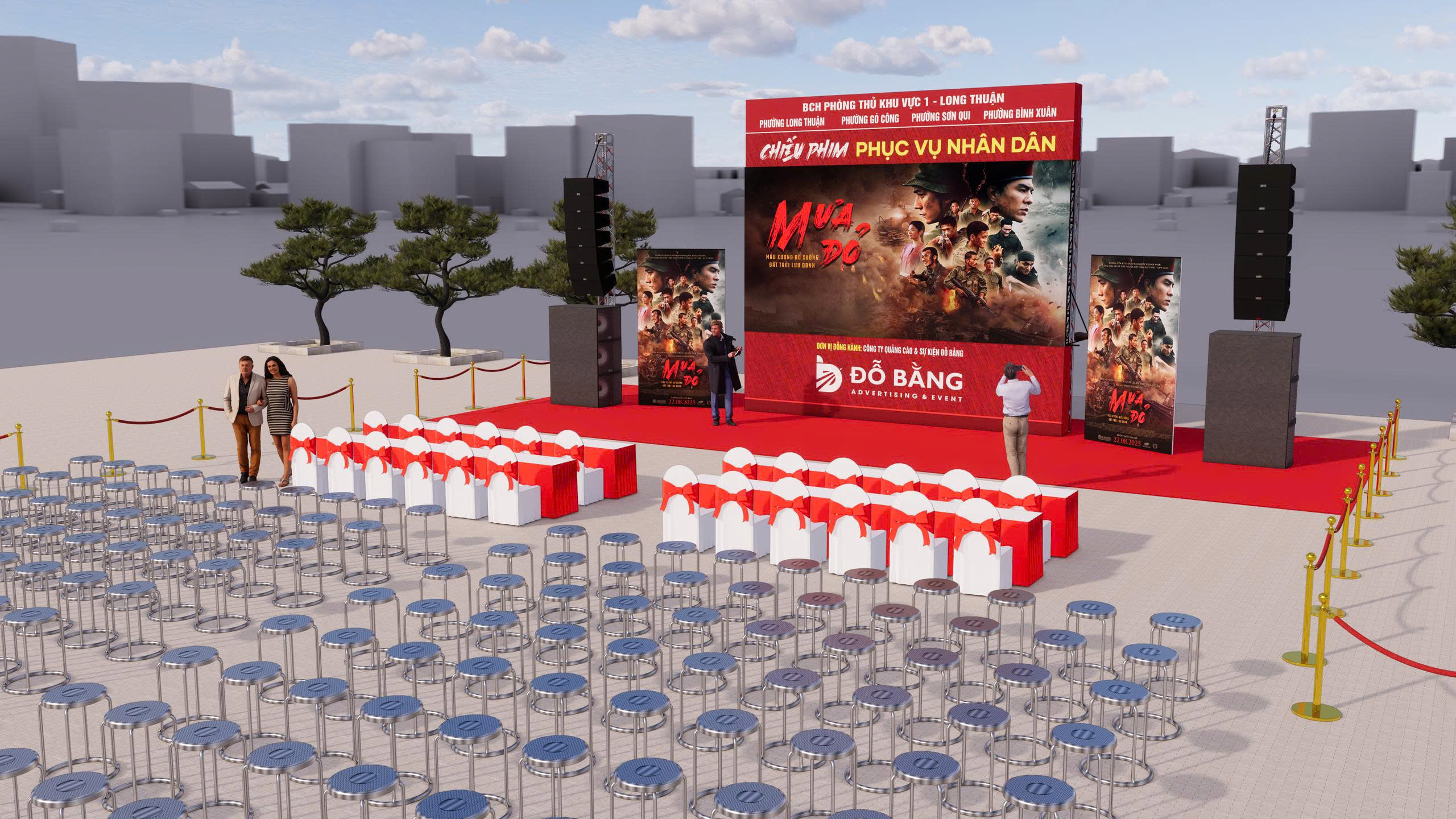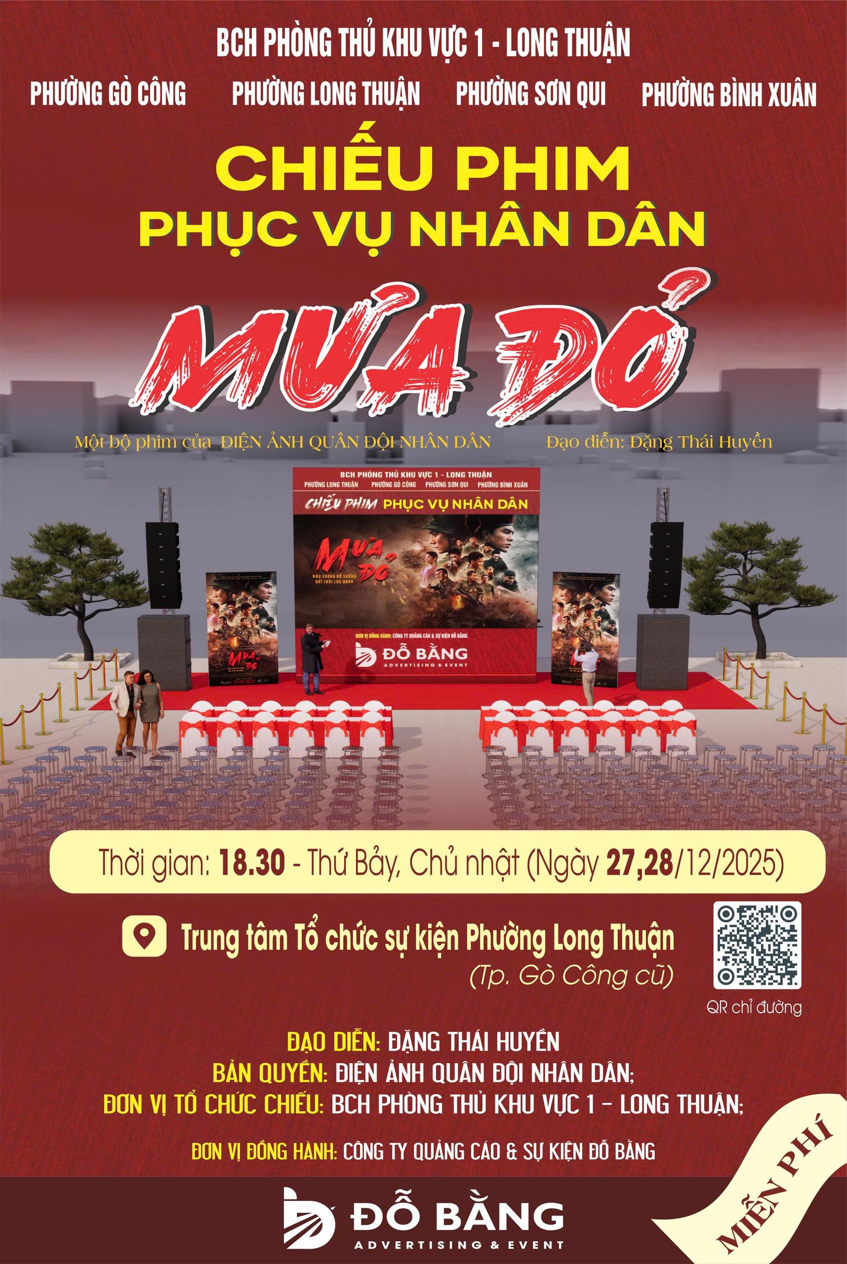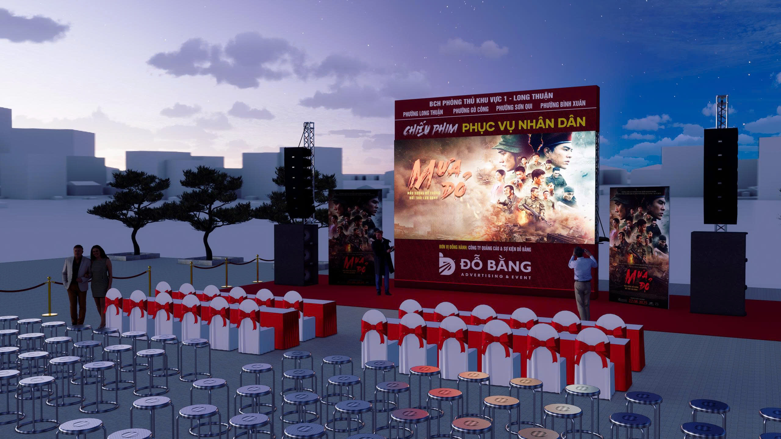 Góp phần vào sự thành công và tính trang trọng của chương trình, Công ty Quảng cáo & Sự kiện Đỗ Bằng vinh dự là đơn vị đồng hành trực tiếp trong khâu kỹ thuật. Chúng tôi đã tập trung nguồn lực để lắp đặt hệ thống màn hình LED chuyên dụng cùng dàn âm thanh hiện đại, đảm bảo công tác trình chiếu những thước phim ‘Mưa Đỏ’ được diễn ra sắc nét, âm thanh sống động và chân thực nhất. Việc đảm bảo vận hành kỹ thuật thông suốt không chỉ giúp truyền tải trọn vẹn cảm xúc của bộ phim đến với nhân dân mà còn khẳng định trách nhiệm của Đỗ Bằng ADV trong việc chung tay lan tỏa những giá trị lịch sử và tinh thần tri ân cao quý tại địa phương.